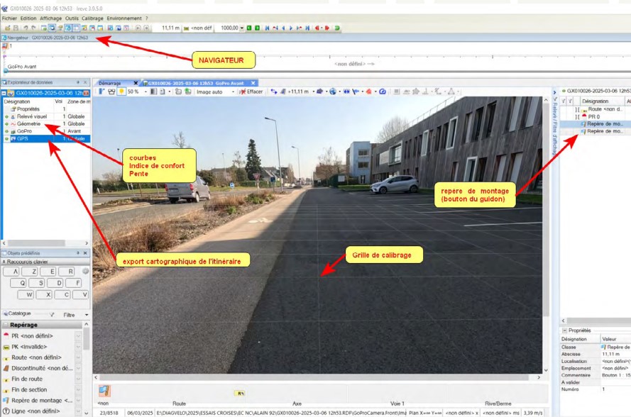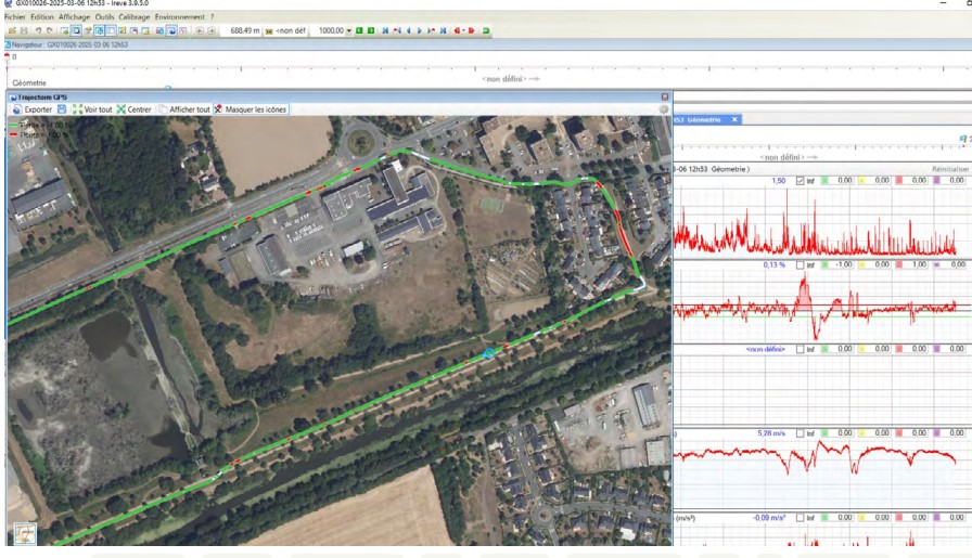 Les mesures sont extraites et restituées sous forme de graphes liés aux images des itinéraires, puis assemblées pour obtenir une cartographie complète des pistes cyclables.